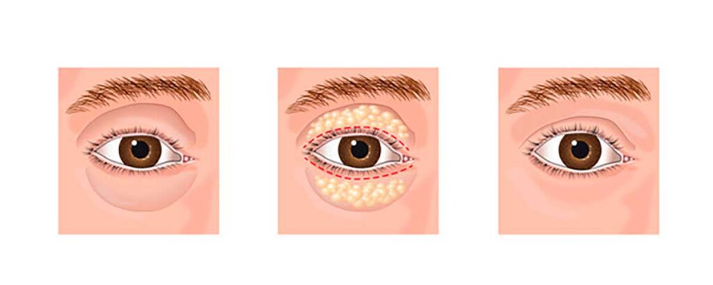 Lower blepharoplasty: it involves removing fat bags, excess skin and muscle that contribute to the appearance of puffy eyes. A lower blepharoplasty involves a small incision along the eyelash line on the lower eyelid or inside the eyelid if there is no excess skin to be removed.